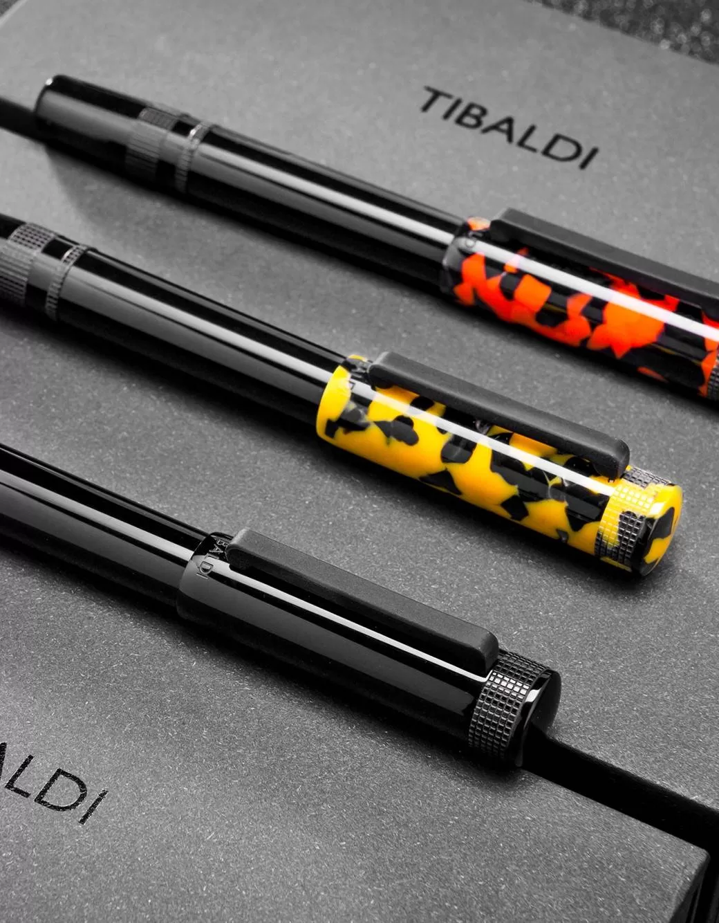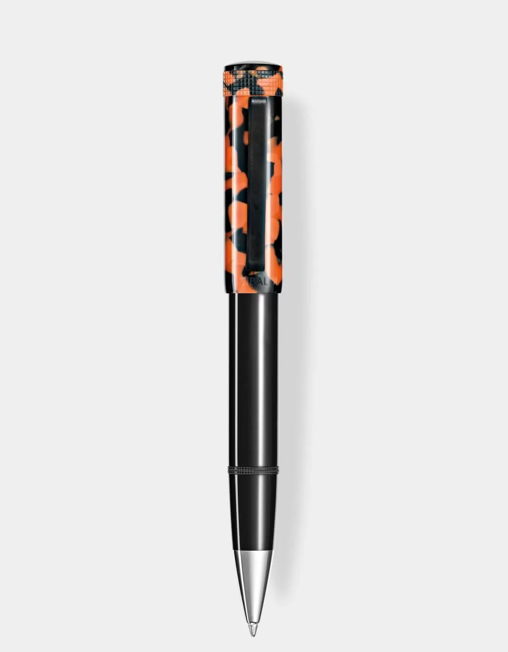 Rich Black and LP Vinyl Orange resin ballpoint pen with rubber clip