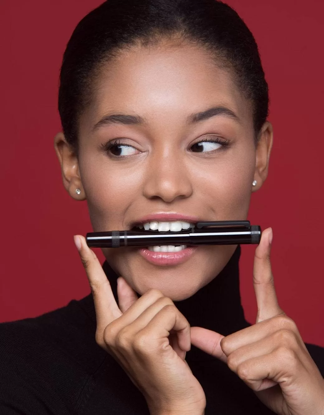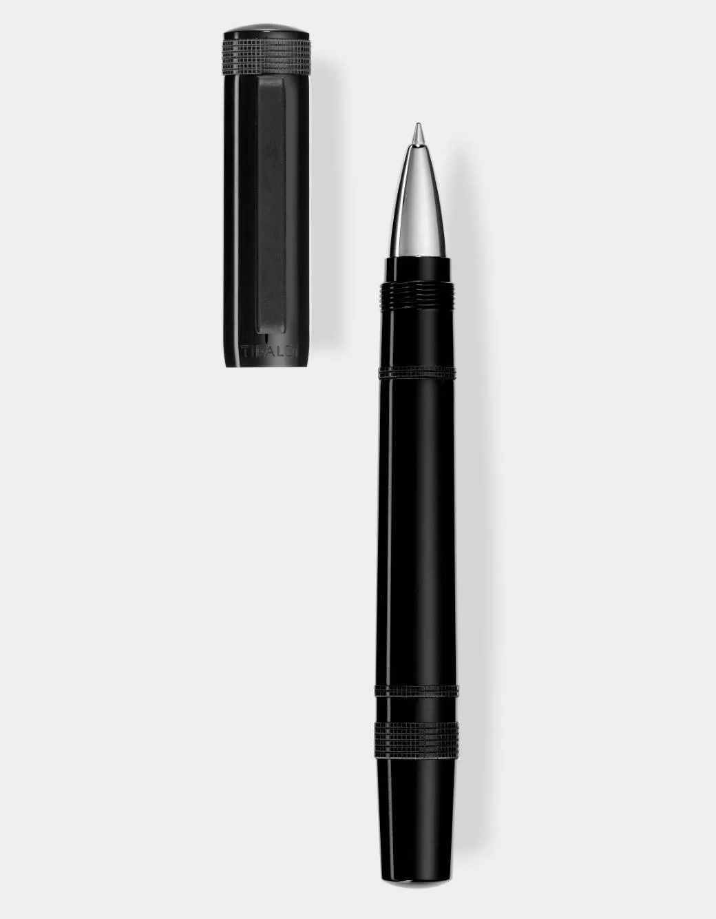 Rich Black resin rollerball pen with rubber clip